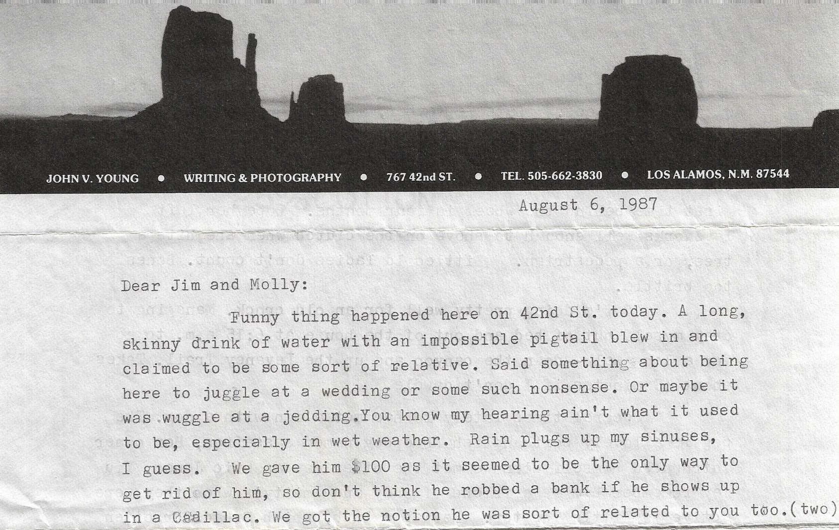 When summer break ended, Jeff went off to Utah to begin his undergraduate journey toward a teaching credentia. Cass paid a short visit to New Mexico in August, as this letter from his doting grandfather recounts.