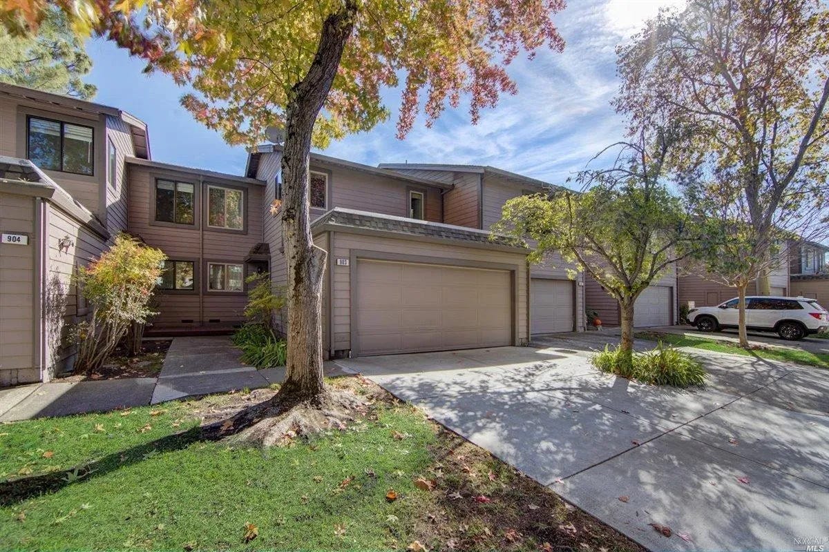 The townhouse was attached on either side to other units, with firewalls between, which provided good sound proofing as well–and a garage adjoining its neighbor on one side. The kitchen, living/dining room, one bedroom and bath were downstairs; upstairs were a loft room overlooking the living room (it served as our joint office/study), our bedroom, master bath, walk-in storage closet, and access to the second-story deck. Both the living room and bedroom downstairs opened onto a small patio, with planting beds along the wood fencing. We found it quite comfortable, even though it was a bit snug when four of us were living there together.