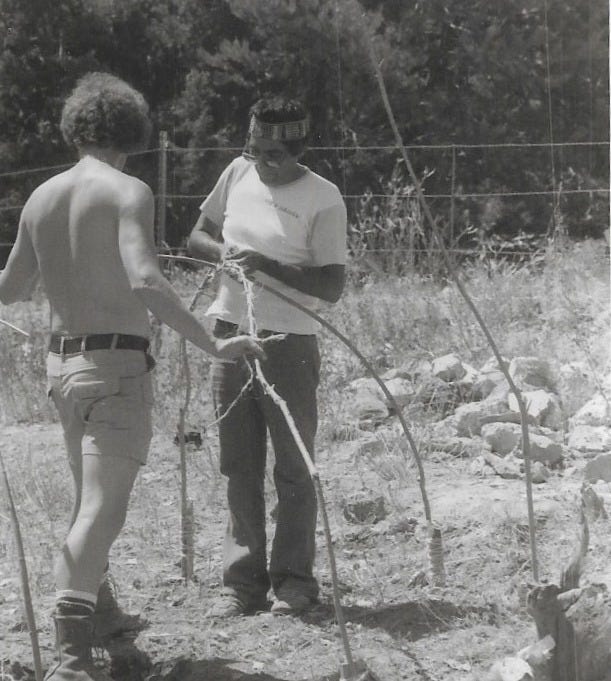 On his own time, Joseph was very active in furthering the use of sweat lodge ceremonies as both a spiritual and health-enhancing practice. He invited me to participate in some of these ceremonies, and I did so gratefully on several occasions. He even offered to help us build a sweat lodge behind our house in White Rock, a gift we enthusiastically accepted. Following his instructions, I gathered green willow branches of a specified length and thickness from wetlands adjoining the Rio Grande several miles from our White Rock home. His instructions included following the shamanic traditions of his people, such as expressing gratitude to the willows and tying a small packet of tobacco to each tree from which branches were taken, in exchange for its contribution to the coming ceremonies. A work party was organized one weekend to construct the dome-shaped lodge. Then Joseph led the ceremony to initiate that lodge one splendid summer evening. We invited several close friends to participate in the ceremony, which was followed by a pot-luck supper.