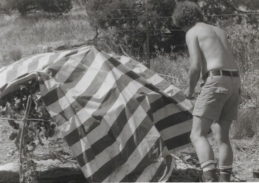 (Both) We heard about a circus and performing arts summer camp that seemed perfect for Cassidy, who was already fascinated by physical theatrics and clowning. It was called Camp Winnarainbow, held at the Lama Foundation, a spiritual retreat center north of Taos, NM, directed by Wavy Gravy and Surya Singer. With some financial help from Molly’s parents, Cassidy attended a one week session in 1980 or 81, and then in subsequent summers, after the camp moved to Sunrise Springs near Santa Fe, he attended some two-week sessions. This was formative in Cassidy’s life, teaching him juggling and clowning arts and initially connecting him with Wavy Gravy. Years later, when Cassidy was at Sonoma State University, he ran into Surya Singer (now Ron Singer) who reconnected him with Camp Winnarainbow in California, where he began working as a camp counselor and teacher during the summers, with reverberations throughout the rest of Cassidy’s life. (More on this in later chapters.)